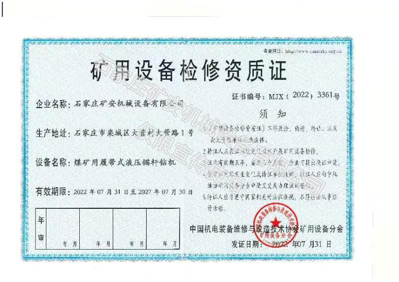 石家莊礦安機(jī)械設(shè)備有限公司成立于2011年3月,公司位于風(fēng)景優(yōu)美、科技發(fā)達(dá)、交通便利的石家莊市欒城區(qū),是一家專注生產(chǎn)煤礦井下支護(hù)機(jī)具(錨桿鉆機(jī))和安全鉆機(jī)(防突,架柱等)及氣動(dòng)隔膜泵等礦用機(jī)械設(shè)備的********,是國內(nèi)煤礦機(jī)械裝備的生產(chǎn)商和服務(wù)商,根據(jù)用戶需求提供井下適用的鉆機(jī)施工解決方案。公司致力于打造研發(fā)、制造、銷售、服務(wù)為一體的現(xiàn)代化企業(yè),全心全意為煤礦生產(chǎn)保駕護(hù)航。 ? 公司建有裝配車間、機(jī)加車間和調(diào)試車間,擁有嚴(yán)格的質(zhì)量控制體系、先進(jìn)的產(chǎn)品開發(fā)系統(tǒng)、完善的試驗(yàn)檢測(cè)設(shè)施、良好的售后服務(wù)保障。先后與中煤科工集團(tuán)沈陽研究院、西安研究院、太原理工大學(xué)、燕山大學(xué)等知名院校建立了緊密的合作關(guān)系。 ? 公司產(chǎn)品主要銷往山西、陜西、山東、內(nèi)蒙古、黑龍江、云南、貴州等七十多個(gè)礦區(qū)和地方煤礦,擁有一支成熟的售后技術(shù)團(tuán)隊(duì),并且和中煤集團(tuán)、華電煤業(yè)集團(tuán)、華潤煤業(yè)集團(tuán)、潞安集團(tuán)、山西焦煤、淮北礦業(yè)等國內(nèi)知名企業(yè)達(dá)成長期合作關(guān)系。 ? 公司始終秉持“讓煤礦生產(chǎn)更安全”的發(fā)展使命,力求誠信與創(chuàng)新,追求卓越與完美,深知“實(shí)實(shí)在在、心無旁騖做實(shí)業(yè)”,這才是本分!石家莊礦安機(jī)械設(shè)備有限公司愿與您攜手共進(jìn),共同發(fā)展!為客戶創(chuàng)造價(jià)值,提供優(yōu)質(zhì)的產(chǎn)品和*佳的服務(wù)是我們永無止境的理念!